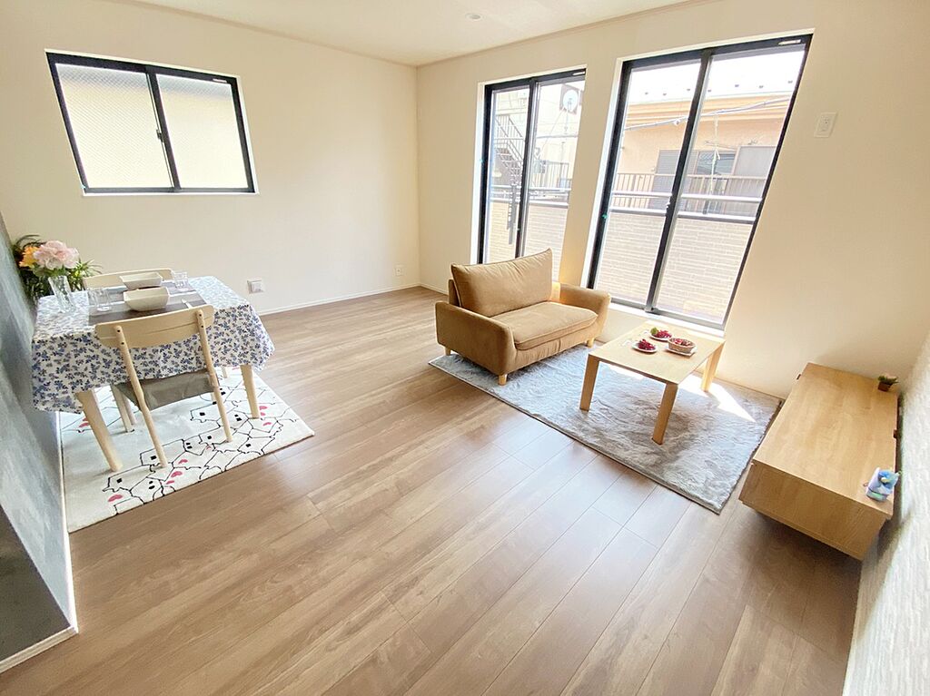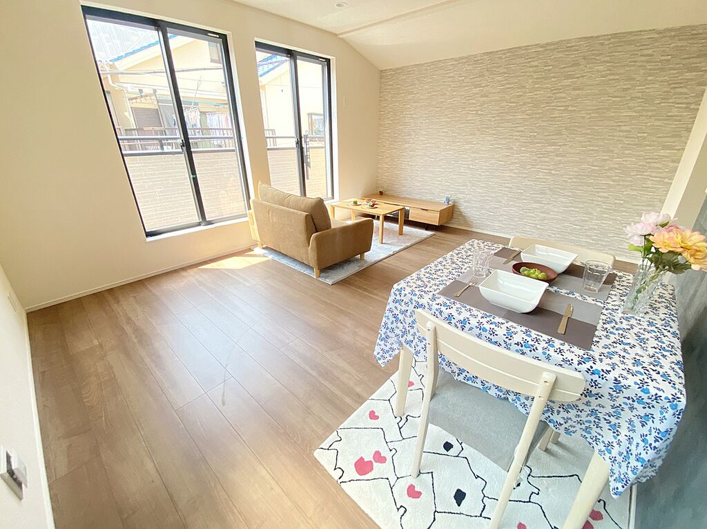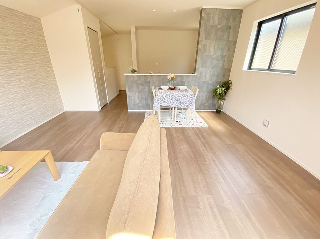 ≪Living room≫暖かな雰囲気のLDKはご家族が自然と集まる穏やかな暮らしがイメージできますね。明るいリビングで家族団らんの時間を楽しみましょう!!