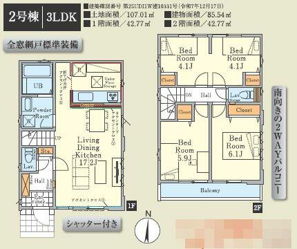 | 建物面積 | 85.50㎡ | 土地面積 | 107.01㎡ | ||