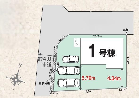 | 地目 | - | 道路付け | 無、北4.5m幅(接道幅12.6m)、西4m幅(接道幅10.3m) | ||