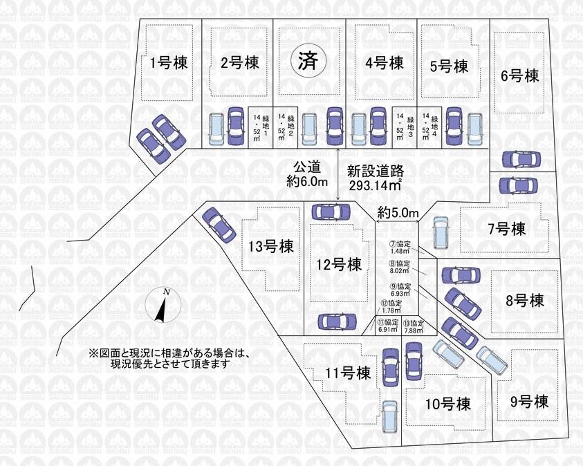 その他制限事項 | 景観法による規制有、宅地造成工事規制区域、高度地区、敷地面積最低限度有、協定道路を敷地面積に含む (7号棟:1.48㎡、8号棟:8.02㎡、9号棟:6.93㎡、10号棟:7.88㎡、11号棟:6.91㎡、12号棟:1.78㎡)/緑地部分を敷地面積に含む(2.4.5号棟各14.52㎡)最低敷地面積110㎡あり/フラット35利用には別途適合証明書取得費用がかかります/太陽光発電システムあり(ご利用には条件があります) | ||||