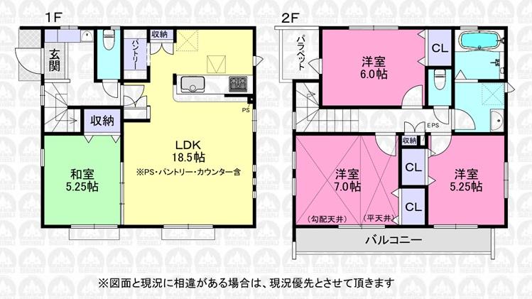 ※土地(建築条件なし)で「建物プラン例」が表記してある時、そのプラン例は特定の建築請負会社によるもので、当該建築請負会社以外で建てた場合、同様のものが同価格で建てられるとは限りません。また建築請負会社を特定するものではありません。