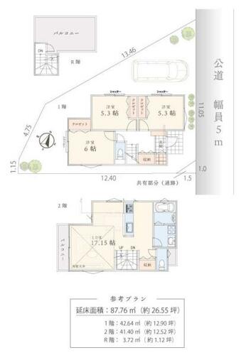 建物面積 | 87.76㎡ | 土地面積 | 108.83㎡ | ||