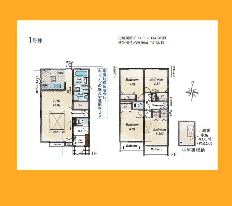 | 建物面積 | 89.9㎡・90.18㎡ | 土地面積 | 114.06㎡ | ||