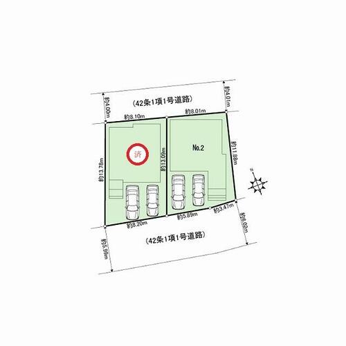 | 私道負担・道路 | - | 道路付け | 南 6.0m 公道 接面9.3m北 4.0m 公道 接面8.0m | ||
