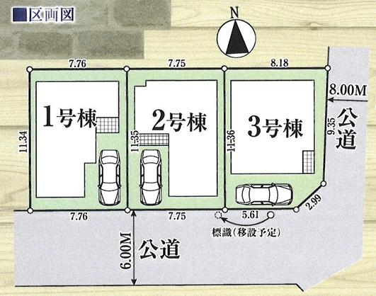 | 建物面積 | 86.11㎡~88.59㎡(実測) | 土地面積 | 88.1㎡~88.35㎡(実測) | ||
