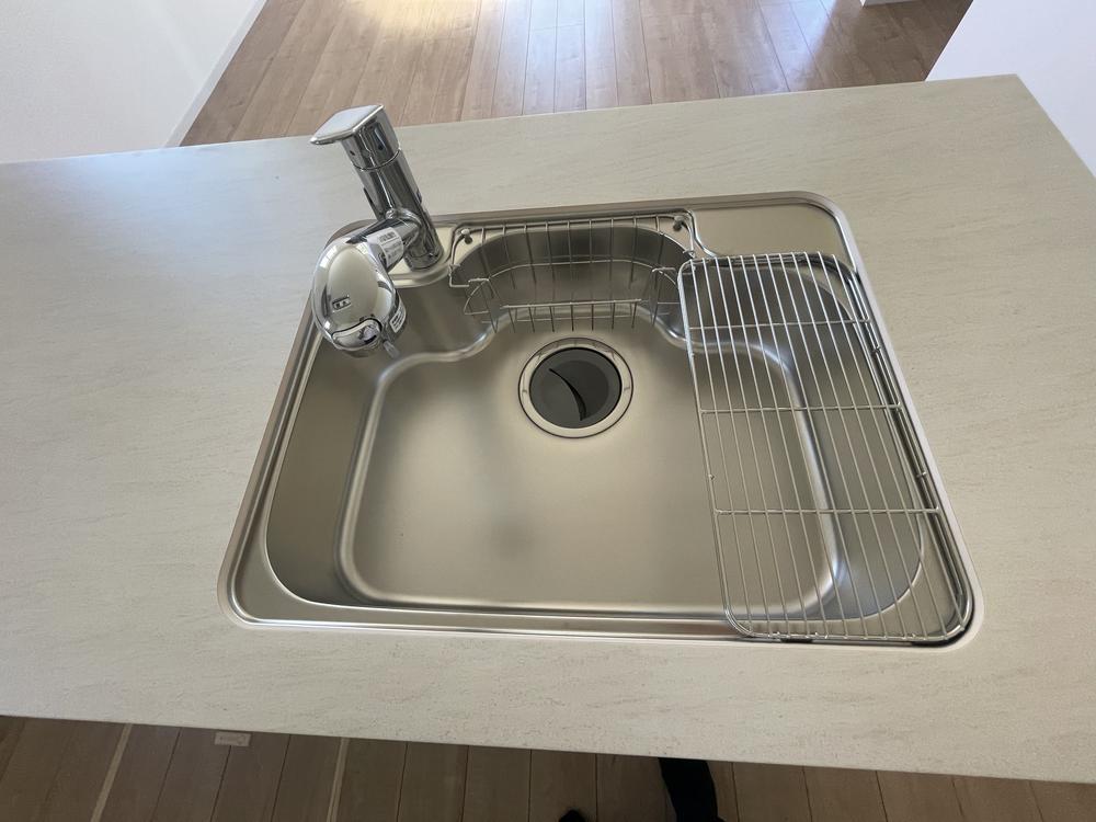 耐熱性、耐水性、耐汚性、耐傷性、耐衝撃性が高く、汚れやニオイがつきにくいキッチンです。シンク(2025年8月)撮影