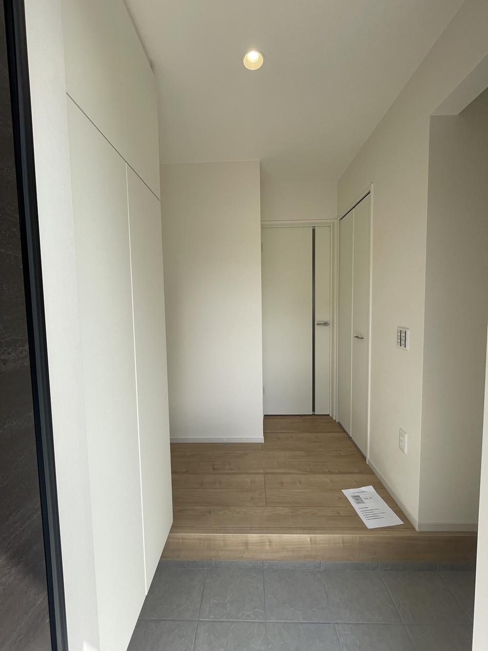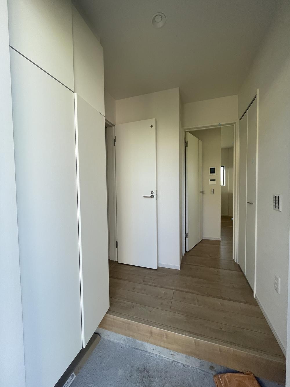 天井まである収納力のあるシューズボックスを備えてました。ご家族分の靴も収まります。ご家族のお見送りやお出迎えも気持ちよくできそうです。玄関(2025年8月)撮影