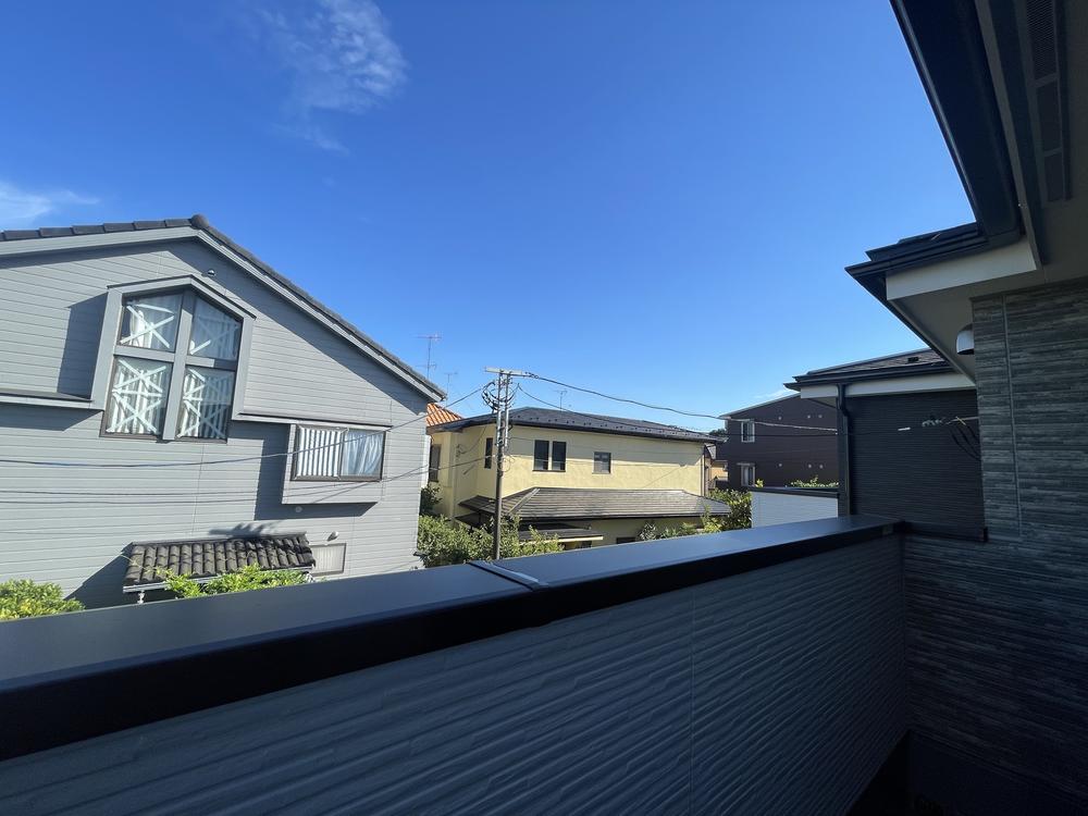 2ヶ所にバルコニーがあるので、お洗濯物やお布団を分けて干せますね。動線も良好で、効率がアップ。空いた時間にティータイムはいかがでしょうか。南東バルコニー(2025年7月)撮影