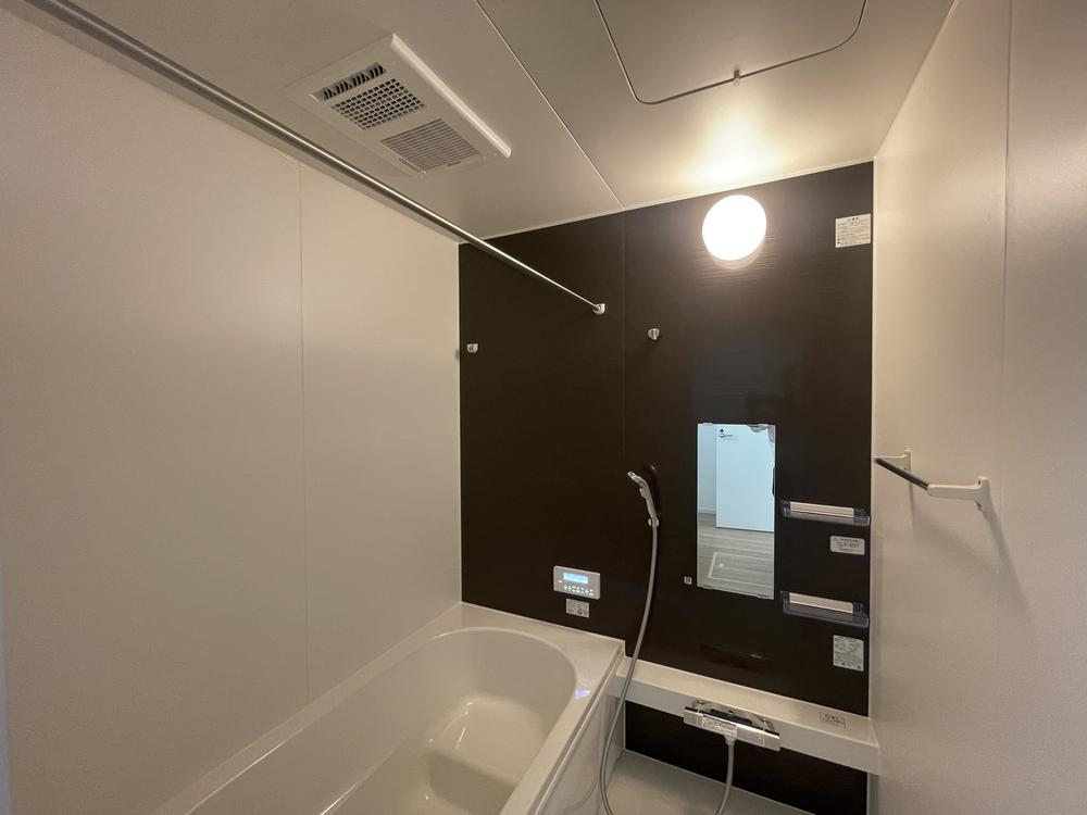 アクセントパネルが洗練された印象の浴室は、ゆっくりと寛げる1坪タイプ。一人で半身浴、ご家族と一緒に賑やかなバスタイム。どちらも癒されるひとときに♪浴室(2025年8月)撮影