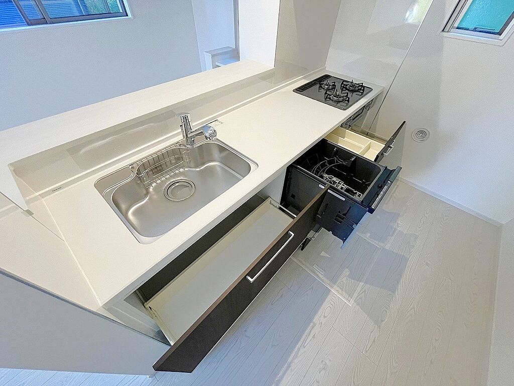 毎日使うキッチンが綺麗で清潔ならお料理を作るのも楽しくなりますよね。機能性とデザイン性を兼ね備えた嬉しいキッチン。食器洗乾燥機付きで後片付けもラクラク。環境にもママの手にも優しい設備です。