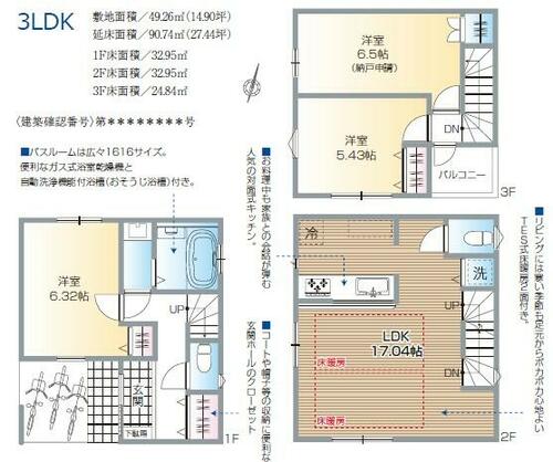 建物面積 | 90.74㎡ | 土地面積 | 49.26㎡ | ||