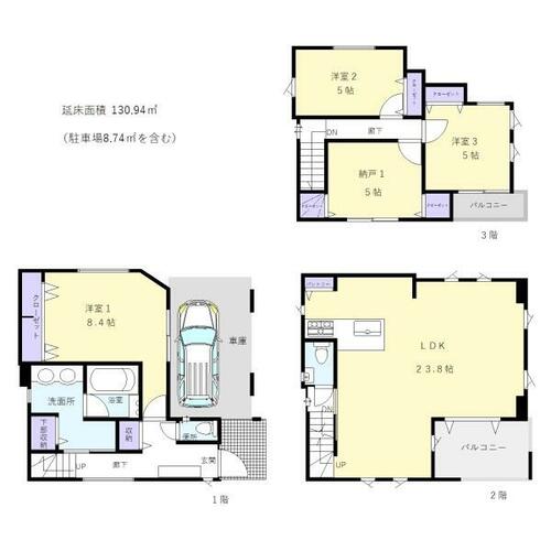 | 建物面積 | 130.94㎡ | 土地面積 | 84.08㎡ | ||