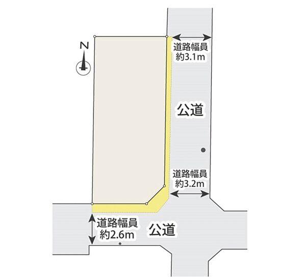 | 地目 | 宅地 | 道路付け | 私道部分9.63m2 | ||