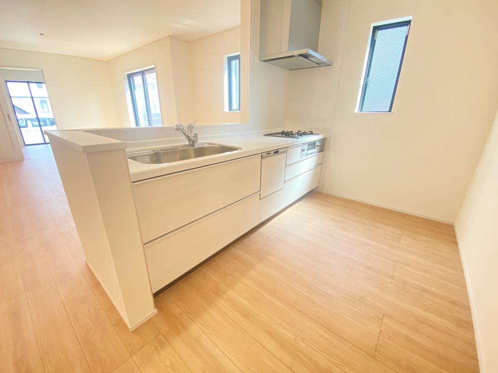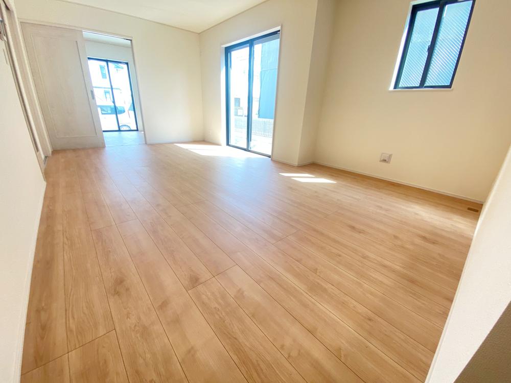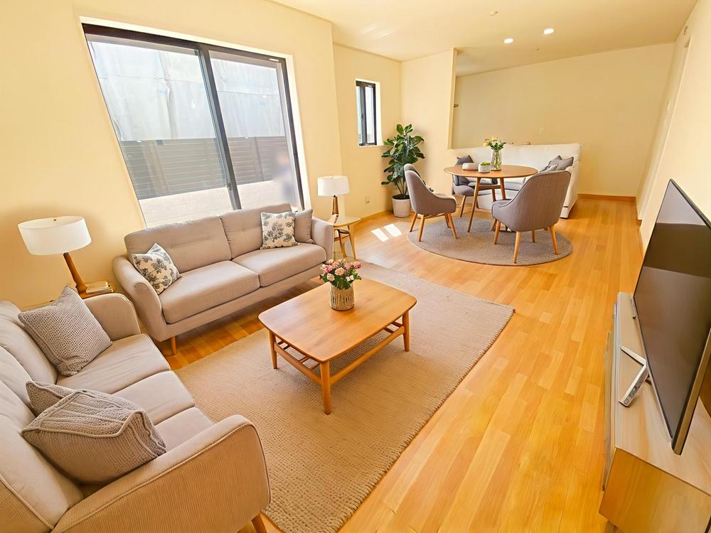 ≪Living room≫ご家族との自然なコミュニケーションが生まれる対面キッチンを採用!暖かい光が降り注ぐ、温もりあふれるお住まいです☆※家具をCGで加工しており、家具付き販売ではございません。