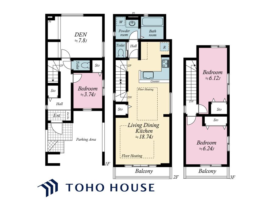 土地面積土地:93.03m2〜93.82m2 建物:83.63m2〜89.01m2