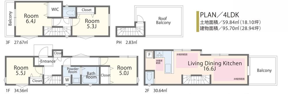 | 建物面積 | 95.7㎡ | 土地面積 | 59.84㎡ | ||