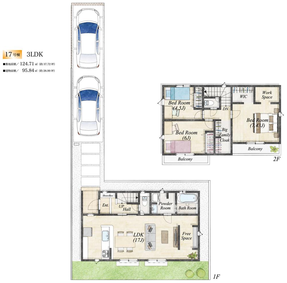 【17号棟】3LDK+WIC■敷地面積/124.71㎡(37.72坪)■建物面積/95.84㎡(28.99坪)☆リビングにフリースペース☆大型ファミリークロークあり♪