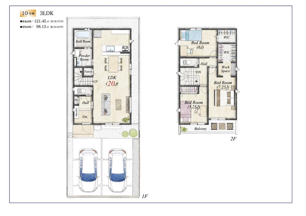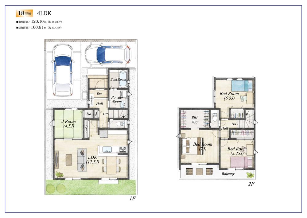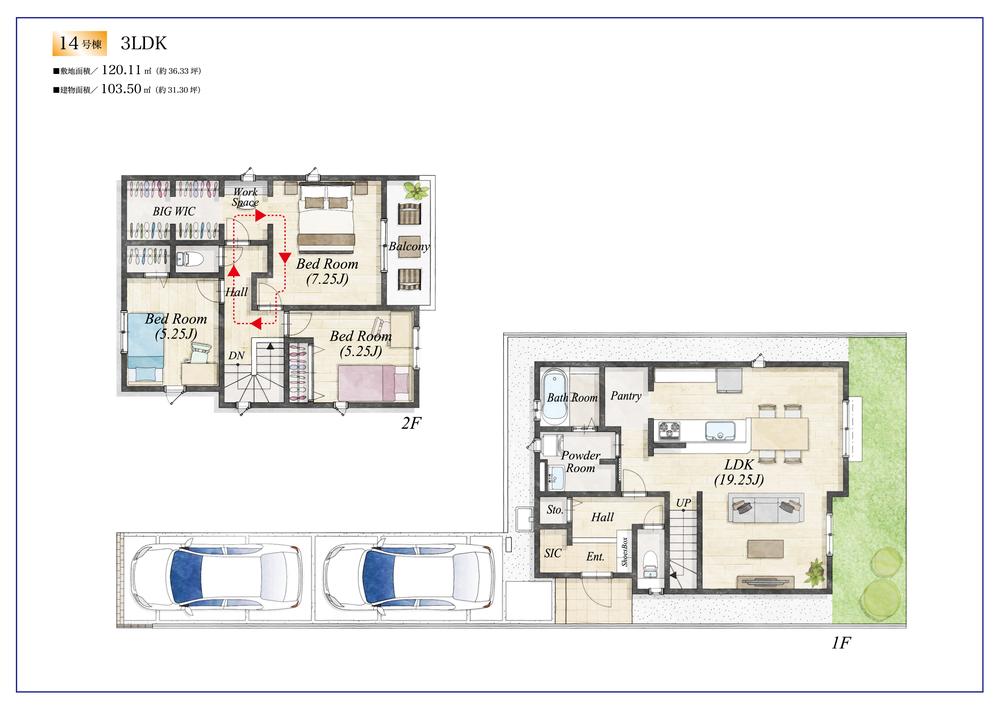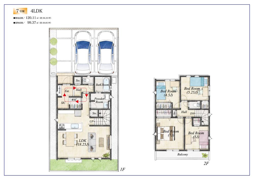 建物面積 | 95.84㎡~100.19㎡(実測) | 土地面積 | 120.08㎡~124.71㎡(実測) | ||