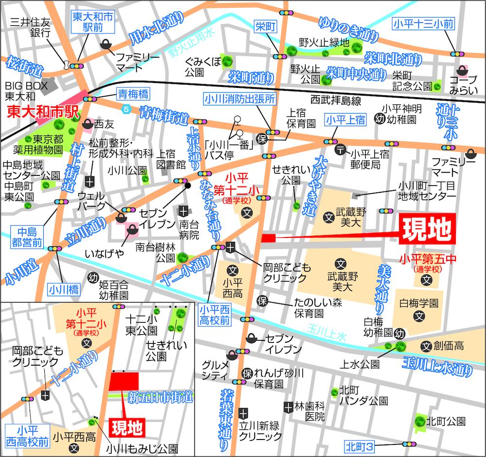 西武拝島線「東大和市」歩17分~18分 西武国分寺線「鷹の台」バス5分武蔵野美術大学歩7分~8分 JR武蔵野線「新小平」バス7分公会堂前歩7分~8分 | ||||