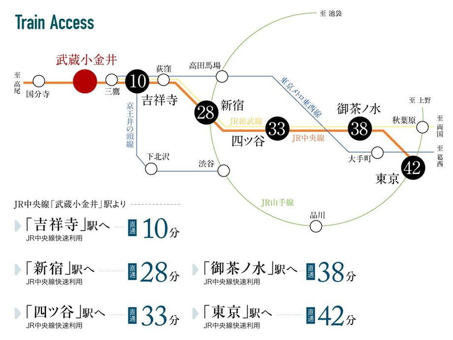 ※表示の分数は平日朝通勤時の所要時間です。※待ち時間・乗換時間を含みます。※最新情報については各鉄道会社のホームページをご確認ください。