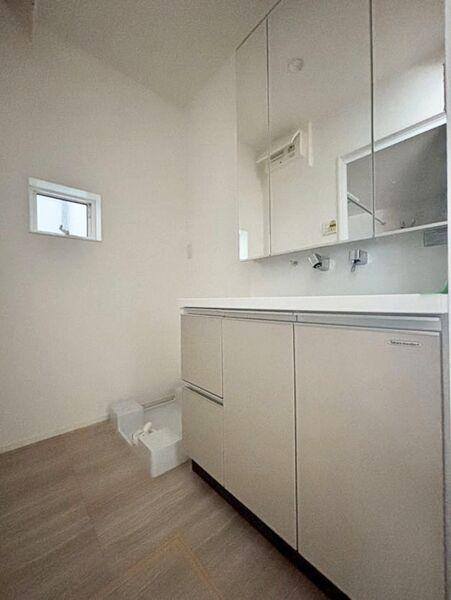 見た目の美しさだけではなく、機能性も追求した使い勝手の良い鏡裏収納付3面鏡型の独立洗面化粧台。広めで使いやすい、お手入れが楽なデザインのカウンターに収納豊富なキャビネットとでいつも清潔に保てます。