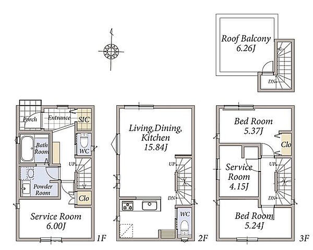 構造および階数 | 木造、地上3階建て | 建ぺい率・容積率 | 60%/240% | ||