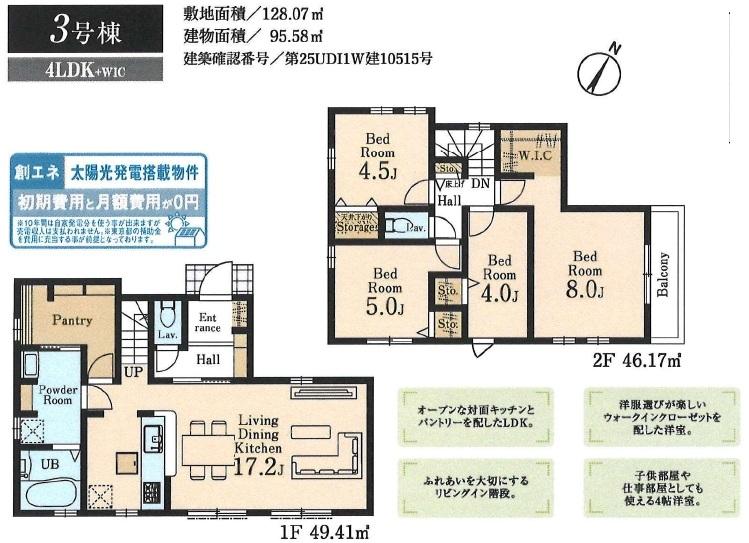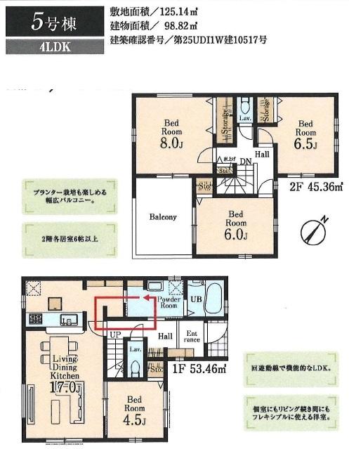 | 建物面積 | 95.58㎡~107.31㎡(実測) | 土地面積 | 125.11㎡~141.44㎡(実測) | ||
