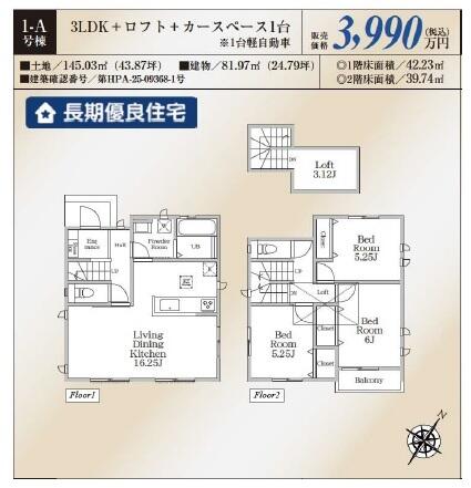 | 建物面積 | 81.97㎡ | 土地面積 | 145.03㎡ | ||