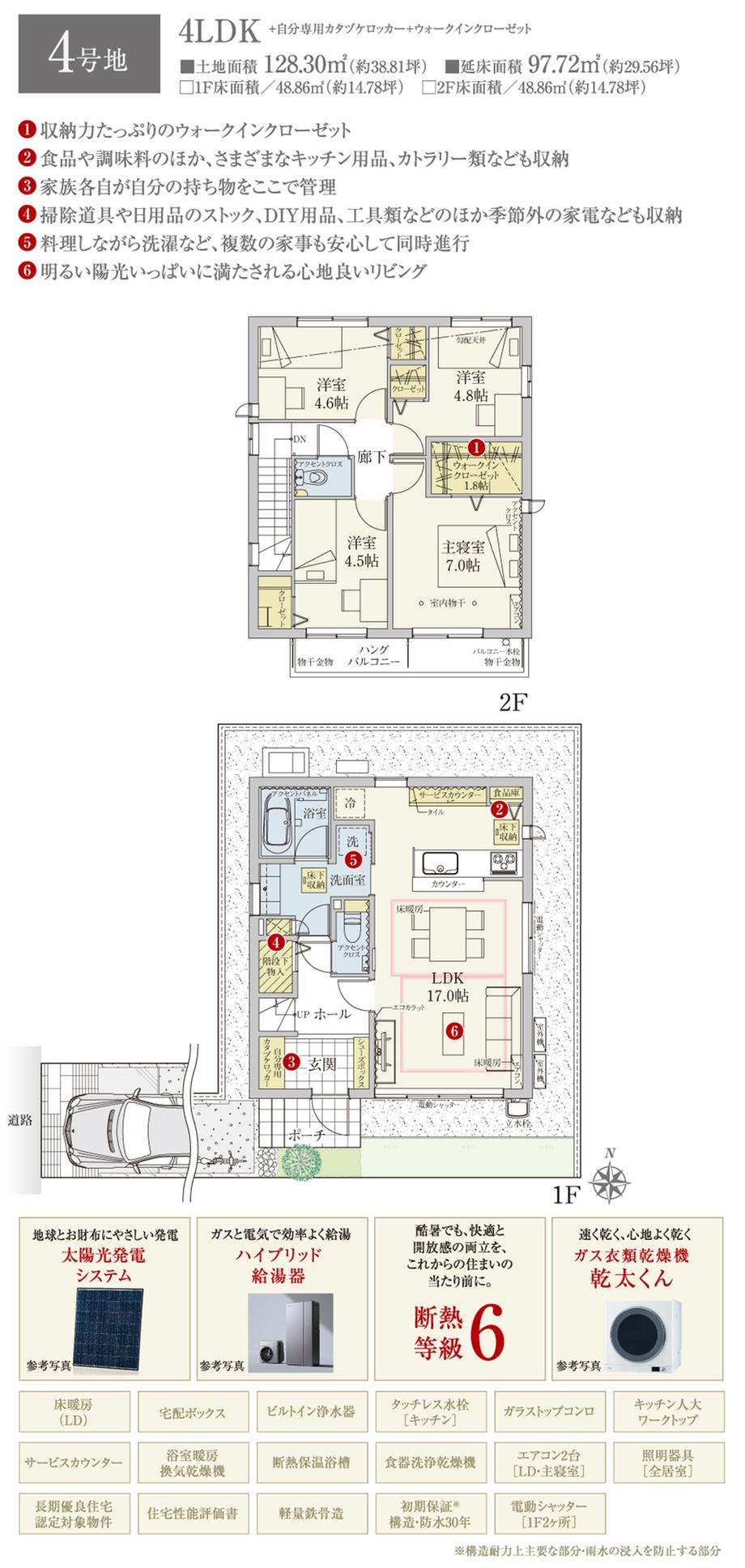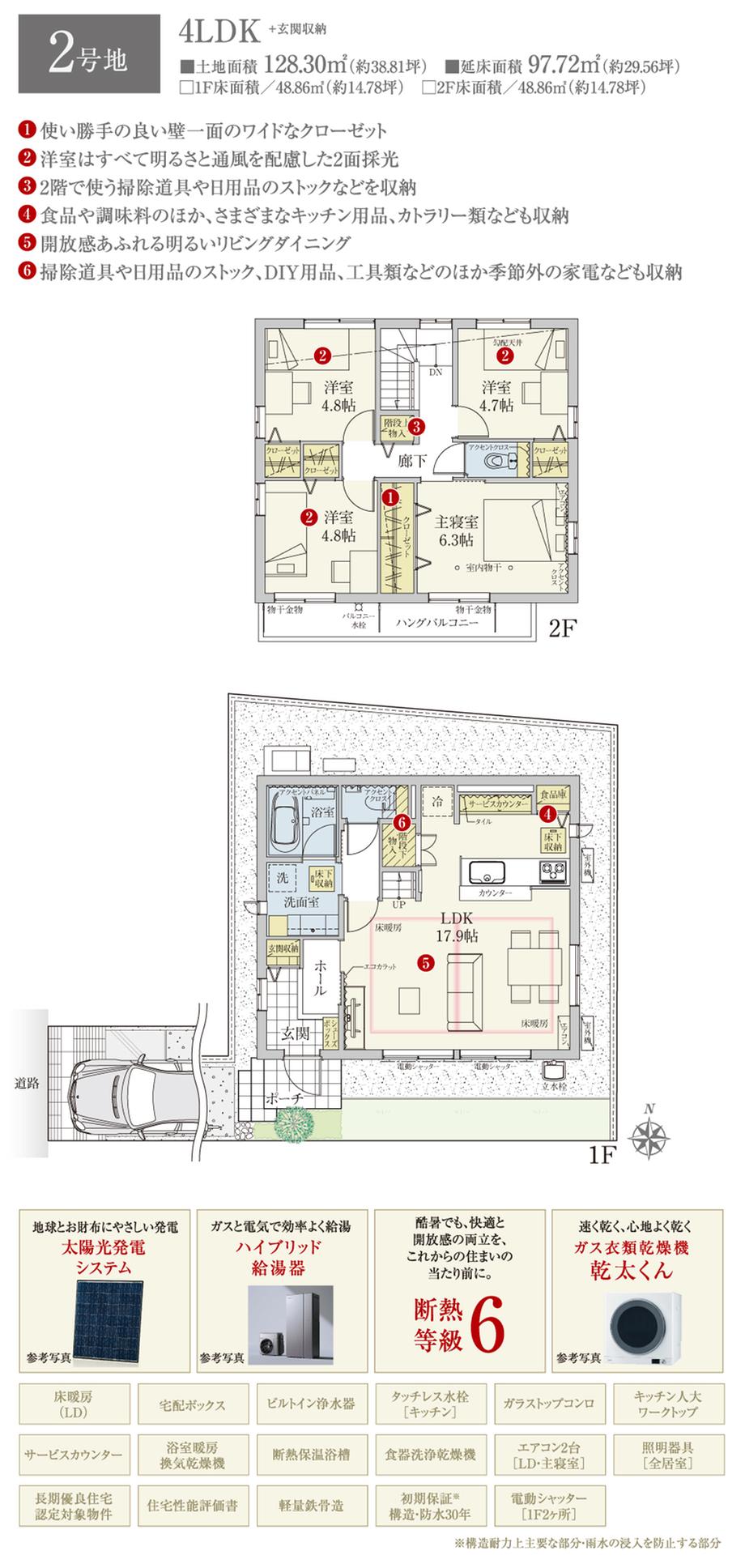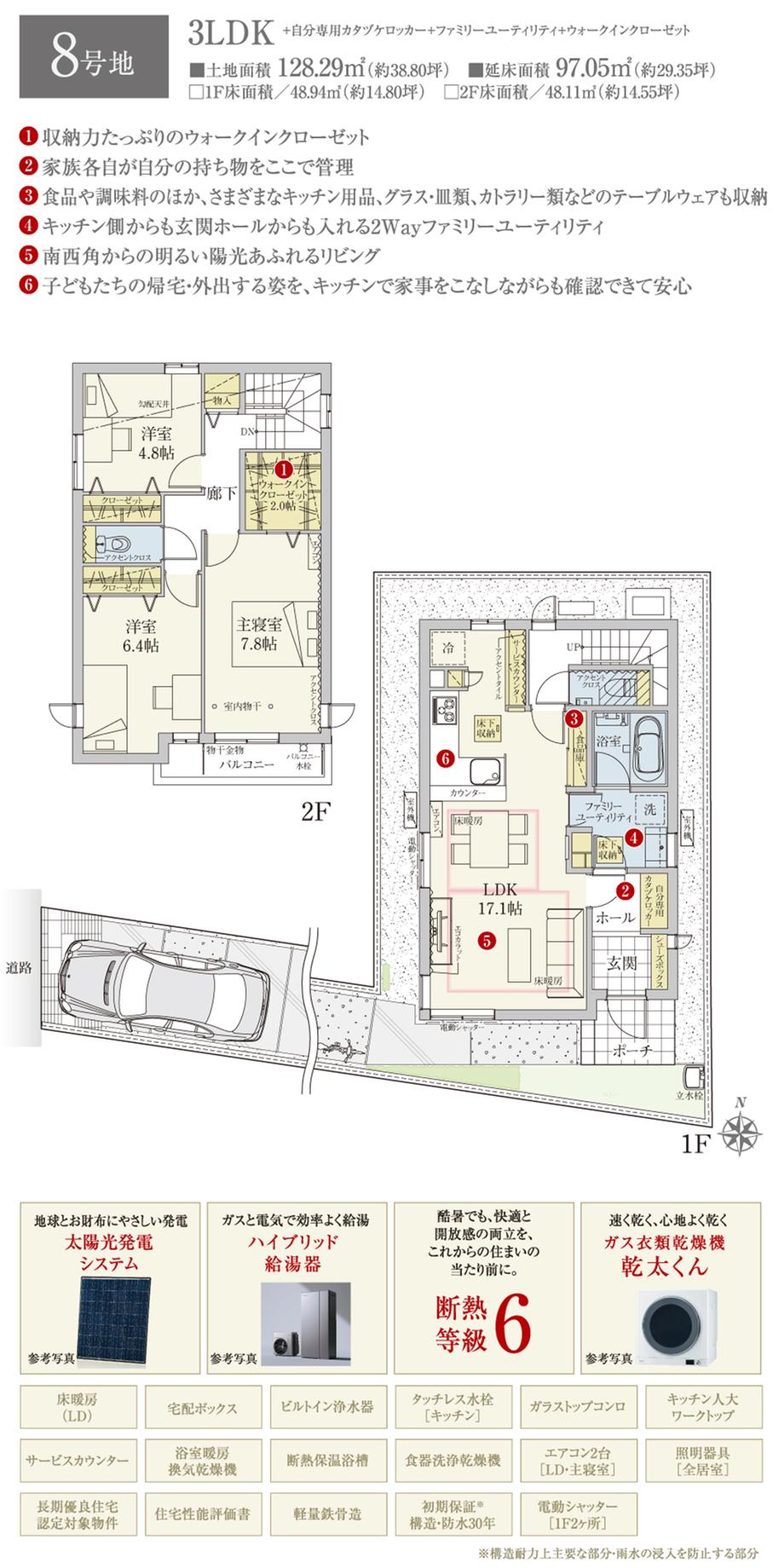 | 建物面積 | 97.05㎡~97.72㎡ | 土地面積 | 128.29㎡~128.3㎡ | ||
