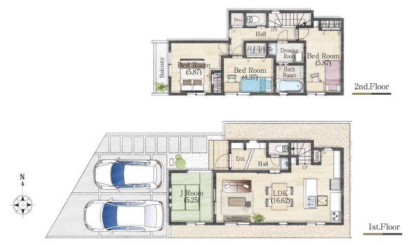 ※土地(建築条件なし)で「建物プラン例」が表記してある時、そのプラン例は特定の建築請負会社によるもので、当該建築請負会社以外で建てた場合、同様のものが同価格で建てられるとは限りません。また建築請負会社を特定するものではありません。