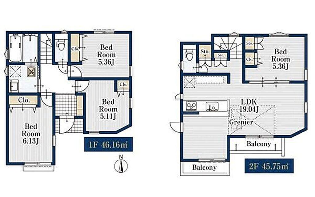 西武新宿線「沼袋」駅 徒歩12分 都営大江戸線「新江古田」駅 徒歩19分 | ||||