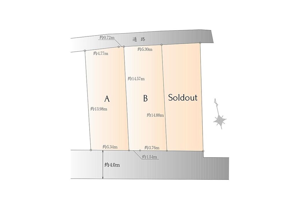 | 道路付け | 南側約4.0m私道(SB後)別途私道負担面積 SB部分 A区画:4.77m2(持分1/1)他 | 機構融資 | - | ||