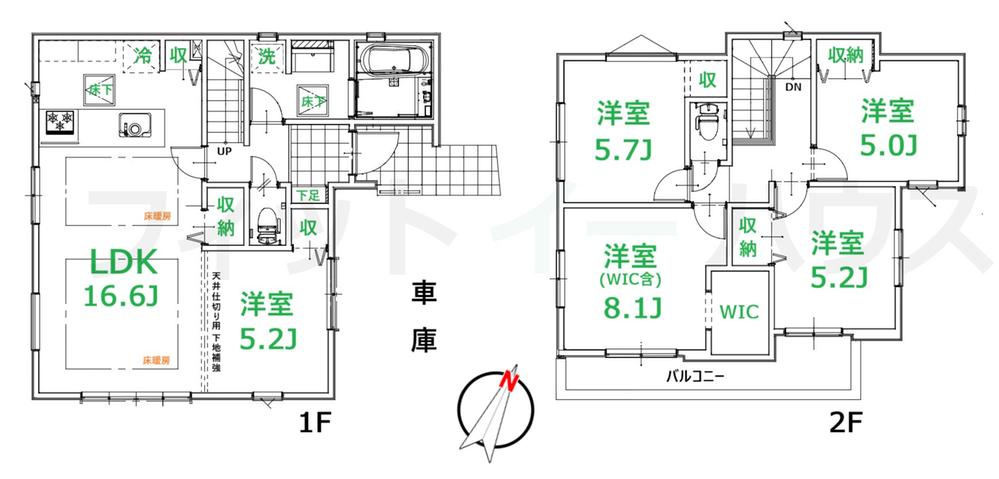 駅14分・南道路・整形地と魅力のある大型5LDK。床暖房など設備充実です。