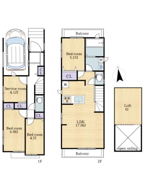 建物面積 | 98.94㎡、うち1階車庫10.55㎡ | 土地面積 | 84.48㎡ | ||
