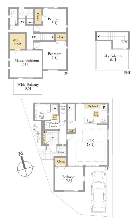 | 建物面積 | 108.05㎡~120.37㎡ | 土地面積 | 90.45㎡~100.24㎡ | ||