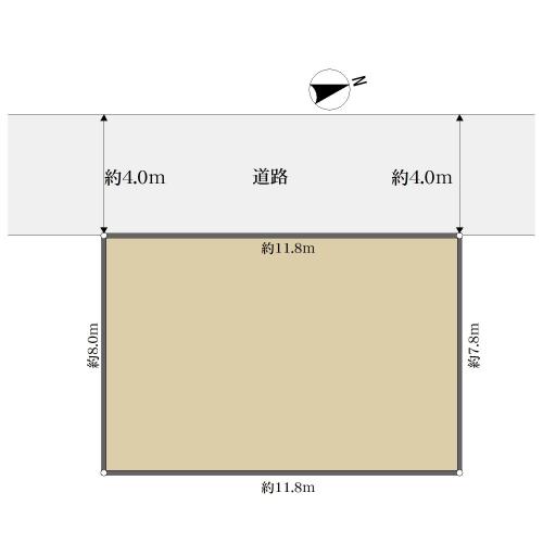 地目 | - | 道路付け | 無、西4m幅(接道幅11.8m) | ||