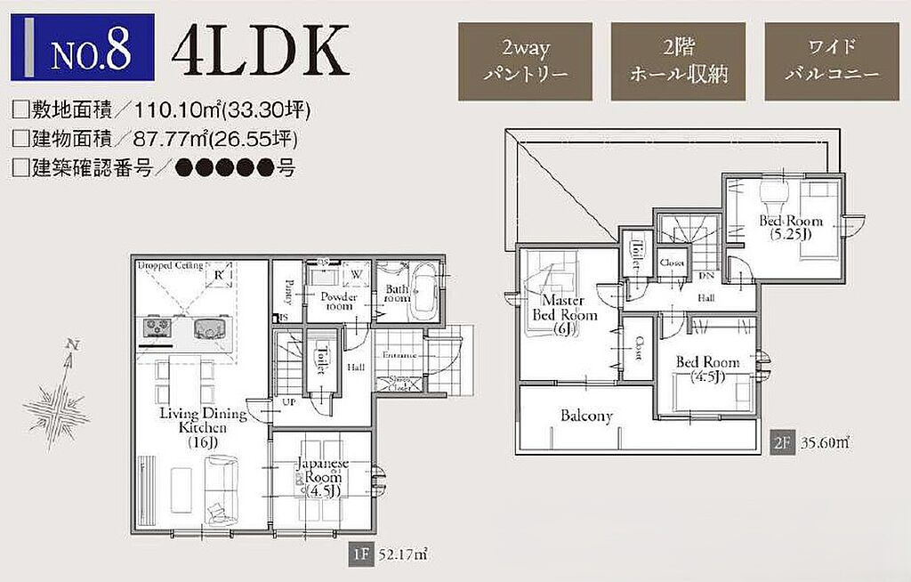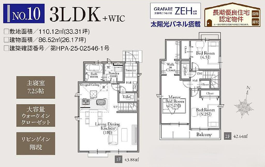 建物面積 | 85.70m2~91.08m2 | 土地面積 | 110.08m2~117.67m2 | ||