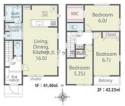 土地面積土地:100.22m2〜107.06m2 建物:79.48m2〜84.46m2