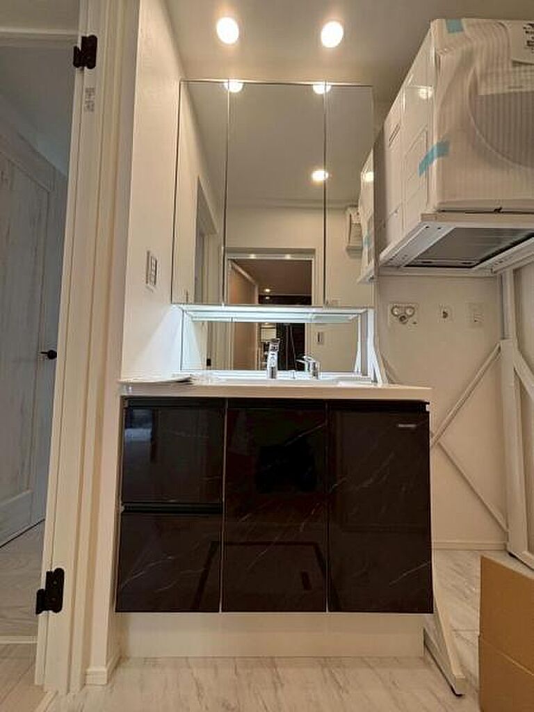洗面化粧室の床はサニタリーフロアを採用。水と汚れに強く耐久性に優れています。