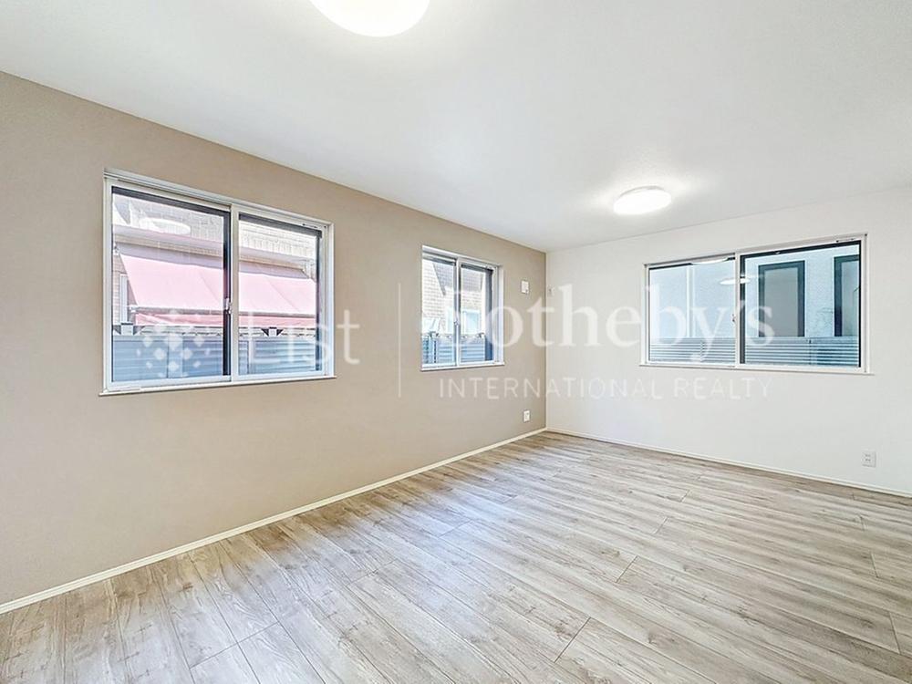 ■洋室■(1号棟)窓の多い室内は、晴れた日の日中は電気をつけなくても明るい印象です。優しい色のフローリングは壁紙ともマッチし、お部屋を更に広く見せてくれる効果も。まずは実際に現地でお確かめ下さい。