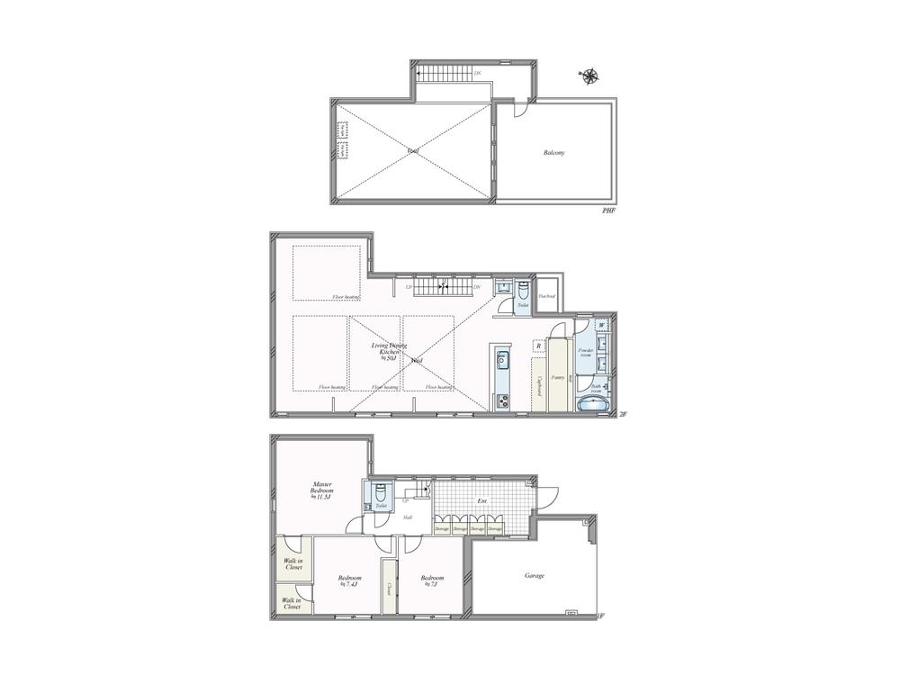 建物面積 | 199.74㎡(60.42坪)(実測)、うち1階車庫23.63㎡ | 土地面積 | 155.73㎡(47.10坪)(実測) | ||