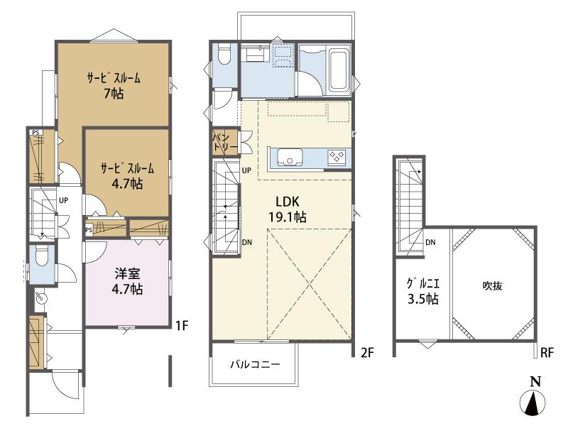※土地(建築条件なし)で「建物プラン例」が表記してある時、そのプラン例は特定の建築請負会社によるもので、当該建築請負会社以外で建てた場合、同様のものが同価格で建てられるとは限りません。また建築請負会社を特定するものではありません。
