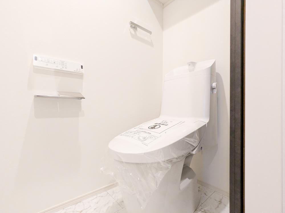 ホワイトの清潔感のある色調のトイレ。ゆとりのある広めの空間は、飽きの来ない洗練された納得の作りとなっております。ワイドな設計で、使い勝手も良好。落ち着いた空間の中で、リラックスした時間をお過ごし下さい