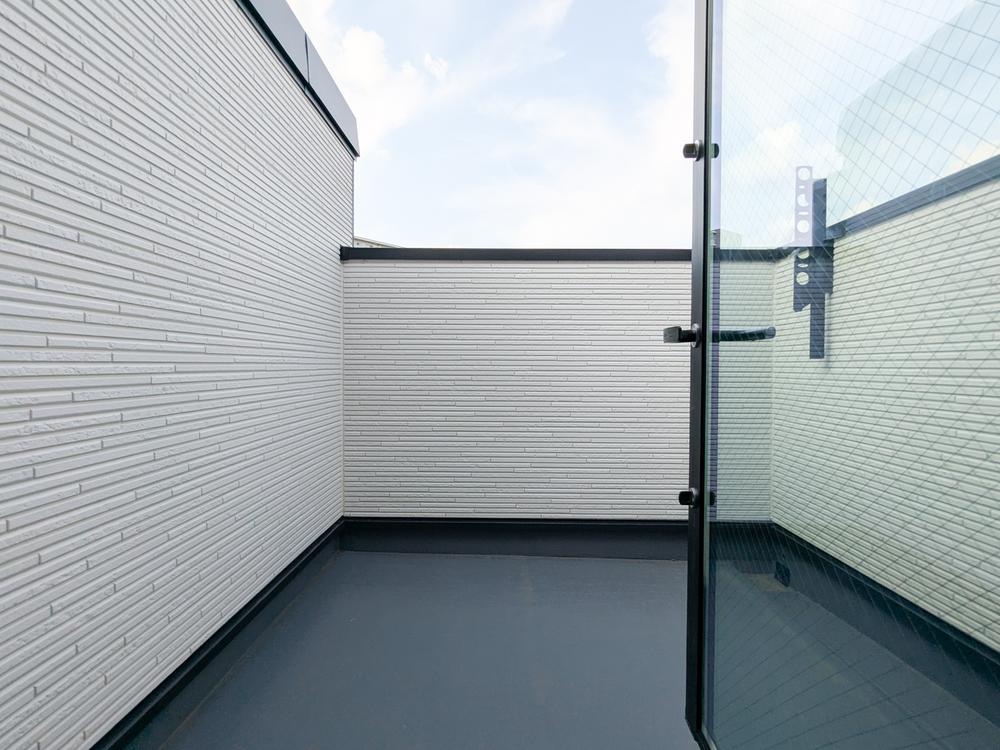 青い空が映えるホワイトカラーの広々としたバルコニー。ふと外を見たとき、気持ちを高らかに高揚させてくれる開放感。ゆとりのある広めのバルコニーは、梅雨時の貴重な晴れの日もまとめて干せる程の余裕があります。