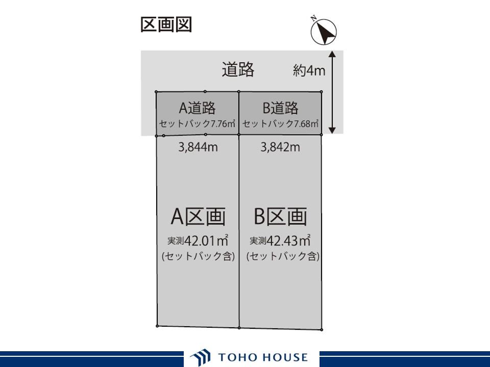 地目 | - | 道路付け | 道路幅:4m、無舗装、私道持分あり、A棟7.76㎡、B棟7.68㎡※共にセットバック部分です。 | ||