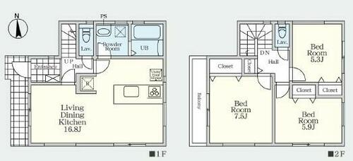 建物面積 | 84.04㎡ | 土地面積 | 119.64㎡ | ||
