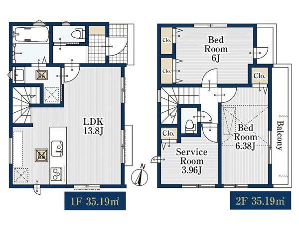 建物面積 | 70.38㎡・71.2㎡ | 土地面積 | 88.32㎡・90.11㎡ | ||