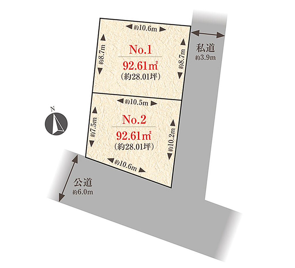 建物面積 | - | 土地面積 | 92.61m2(2区画とも) | ||