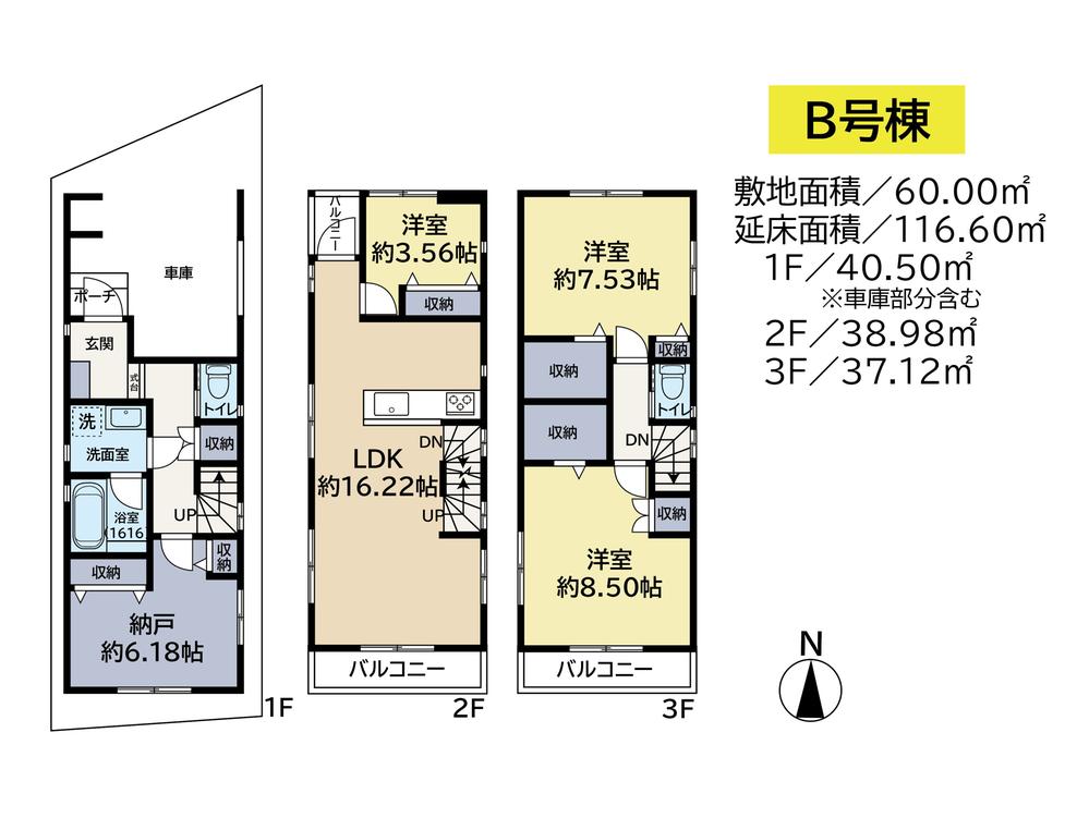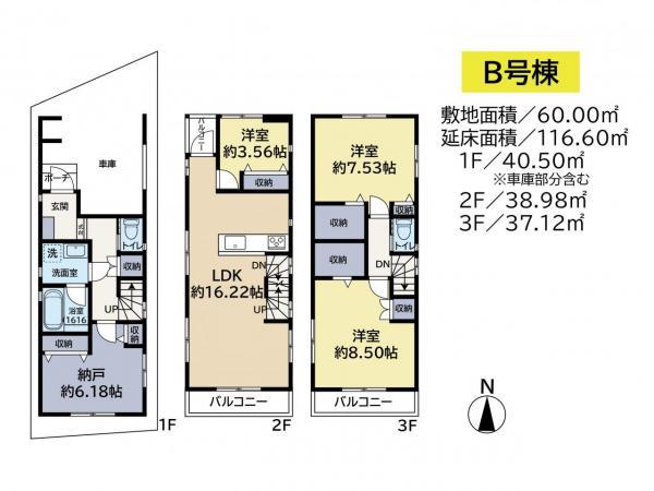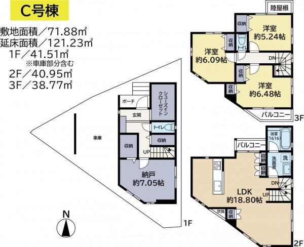 建物面積 | 106.94㎡・109.12㎡ | 土地面積 | 60㎡・71.88㎡(実測) | ||