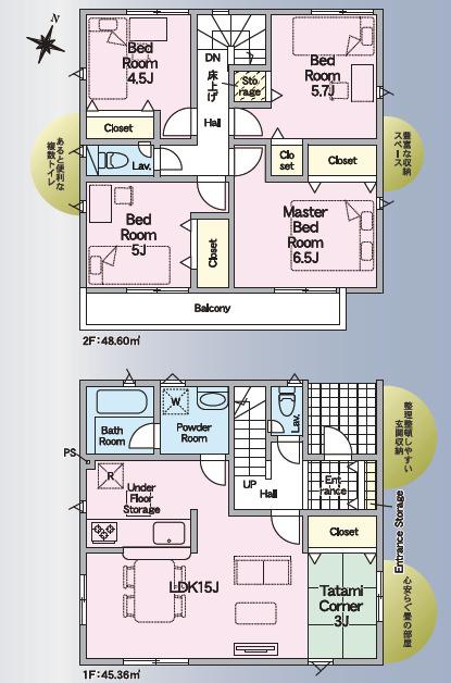 ※土地(建築条件なし)で「建物プラン例」が表記してある時、そのプラン例は特定の建築請負会社によるもので、当該建築請負会社以外で建てた場合、同様のものが同価格で建てられるとは限りません。また建築請負会社を特定するものではありません。